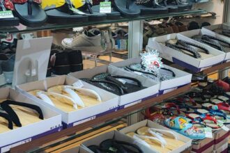 這間鞋店販賣許多代表博多的木屐及草鞋